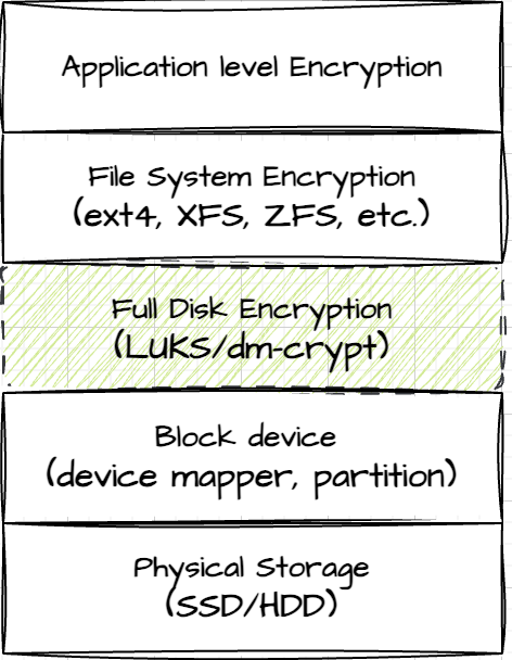 - Оцените Luks всегда как механизм дополнительного шифрования на уровне диска, а также шифрование на уровне приложения. Но это не замена для шифрования уровня приложения/базы данных или файловой системы.