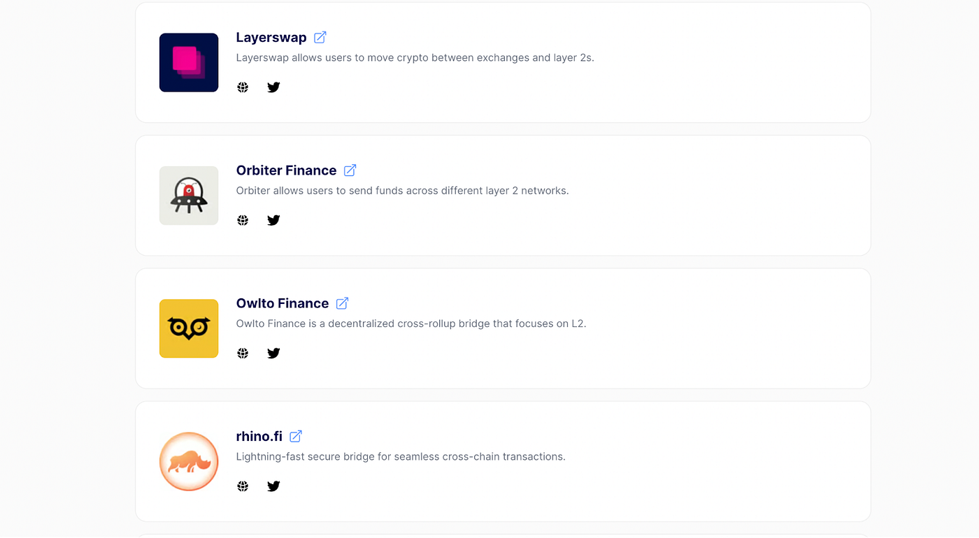 Ссылаясь на рекомендуемые проекты межсетевых мостов на официальной странице Starknet, можно увидеть, что охват проектов на платформах задач относительно высок. Хотя один веб-сайт и не является полным, он может понять наиболее рекомендуемые проекты и напрямую участвовать в проектной деятельности, экономя много времени и усилий.