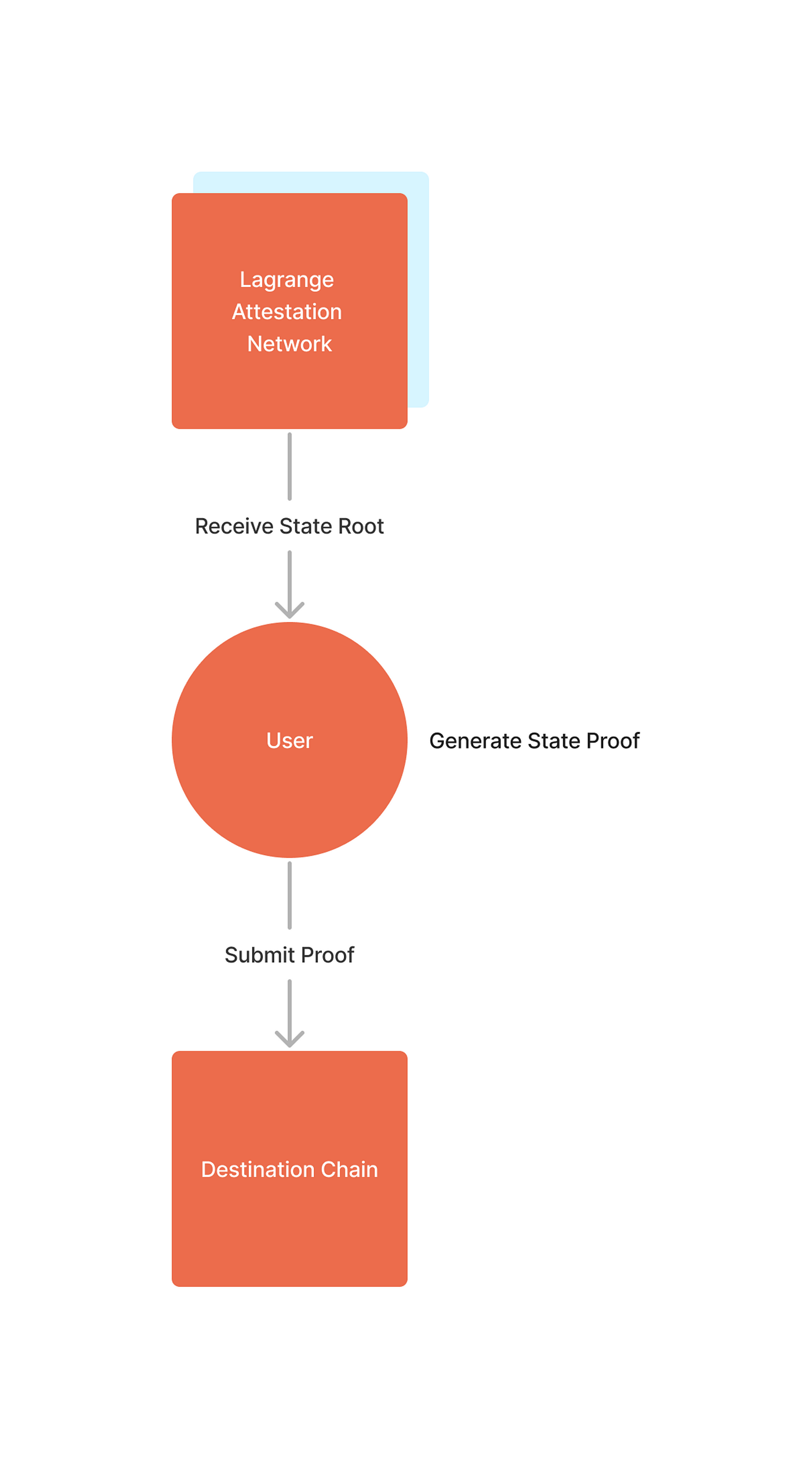 Lagrange Labs создает неинтерактивные доказательства состояния между цепочками. Сеть аттестации Лагранжа отвечает за создание корней состояния. Каждый узел Лагранжа содержит часть сегментированного закрытого ключа, который он использует для подтверждения состояния конкретной цепочки. Каждый State Root представляет собой пороговый подписанный Verkle Root, который можно использовать для проверки состояния конкретной цепочки в определенное время. State Roots являются полностью обобщенными и могут использоваться в State Proofs для проверки текущего состояния любого контракта или кошелька в цепочке.